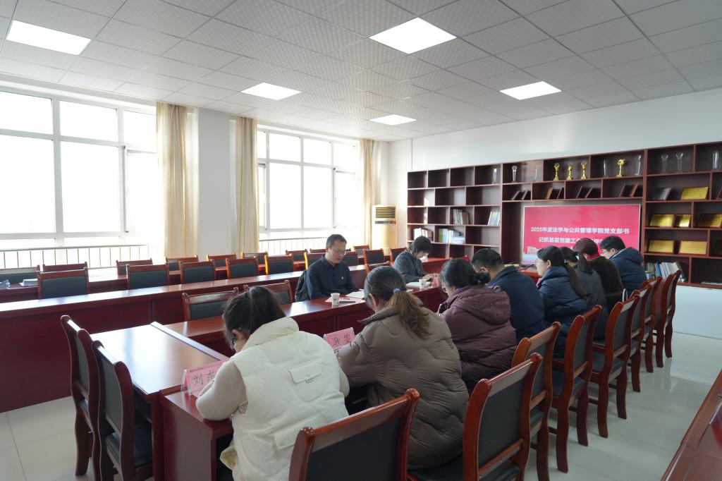 蒋涛涛对学院党建工作成效予以认可,他强调,2026年是“十五五”开局之年,学院要以此次述职评议为契机,锚定“抓基层、强基础、固根本”核心目标:一要强化政治引领,把党的二十大精神融入党建工作各环节,筑牢思想根基;二要深化融合发展,找准党建与法学、公共管理专业建设的结合点,以党建引领学科发展;三要压实主体责任,拧紧意识形态工作责任链条,确保基层党建工作落地见效,为学校“十五五”事业发展筑牢基层党建根基。