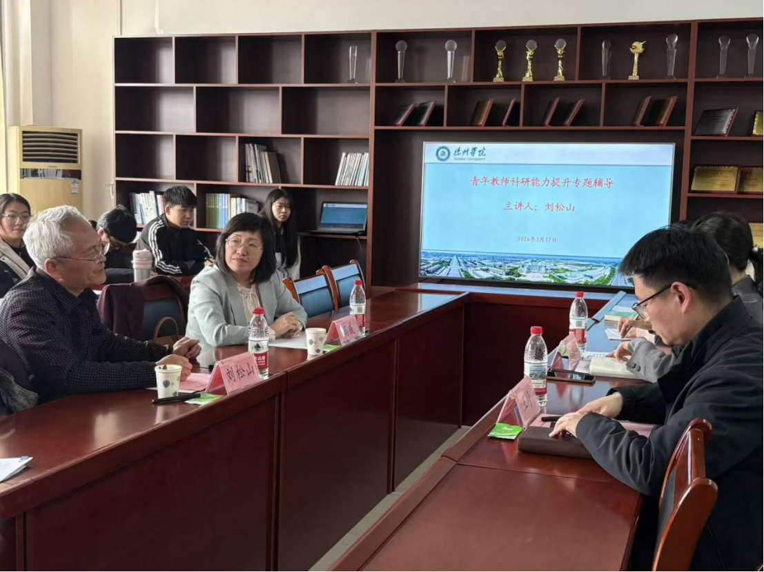 在博文楼439会议室,刘松山教授、冯威研究员分别围绕“青年教师科研能力提升”“咨政报告撰写”为青年教师代表作了专题辅导。辅导中,刘松山教授结合立法与科研实践,讲解科研选题设计、社科项目申报要点,阐释咨政报告的政治站位与撰写逻辑。冯威研究员聚焦咨政报告撰写实操,拆解全流程撰写要点,分享学术成果向咨政建言转化的核心方法。现场互动热烈,参会教师纷纷表示收获颇丰。