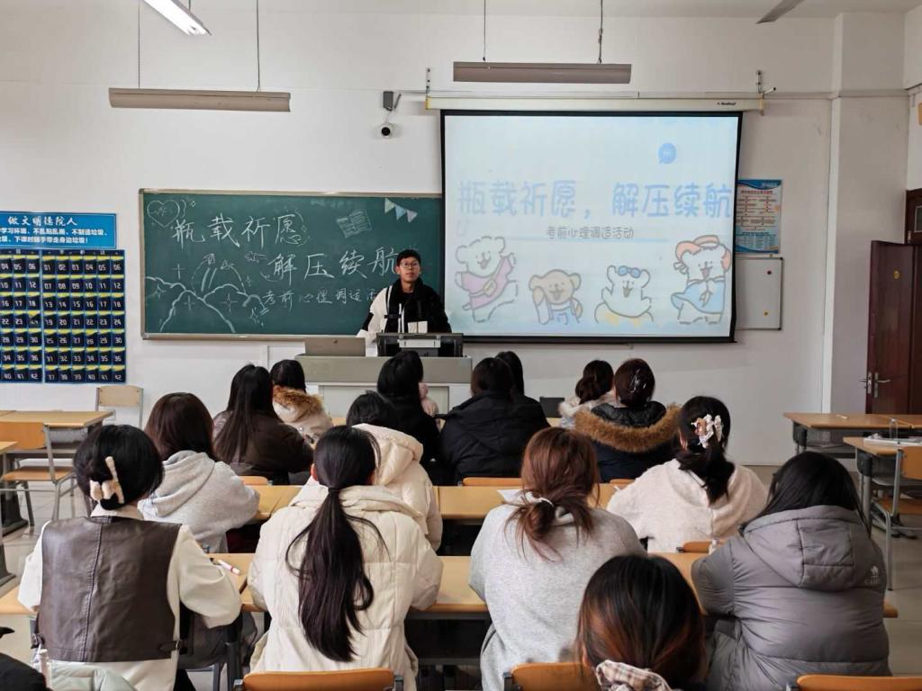 为缓解考前焦虑情绪,帮助同学们调整备考心态、提升情绪管理能力、增强冲刺信心,2025年11月16日,402永利集团官网于博文楼421教室开展了“瓶载祈愿,解压续航”四六级考前心理调适活动。