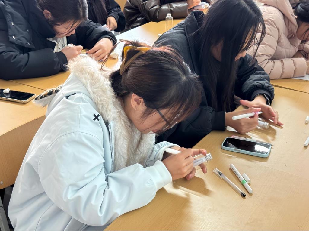 活动伊始,主讲人通过趣味问答和生动漫画,讲解了焦虑的常见表现,并针对四六级考试的核心焦虑特征进行了深入解析,引导同学们科学认识自身的考前心理状态。随后,同学们在卡片正面写下备考过程中的焦虑与烦恼,反面则书写心愿或鼓励的话语,折好后放入心愿瓶并加以装饰。大家在动手过程中有效释放了心理压力,感受到了情绪疏解的轻松。在“互助赋能”环节,同学们分享了备考中的“崩溃瞬间”,通过其他同学的幽默接梗与暖心鼓励,焦虑情绪在轻松的氛围中逐渐化解。最后,大家结合自身感悟与备考进度,交流复习规划,凝聚起共同冲刺的力量。