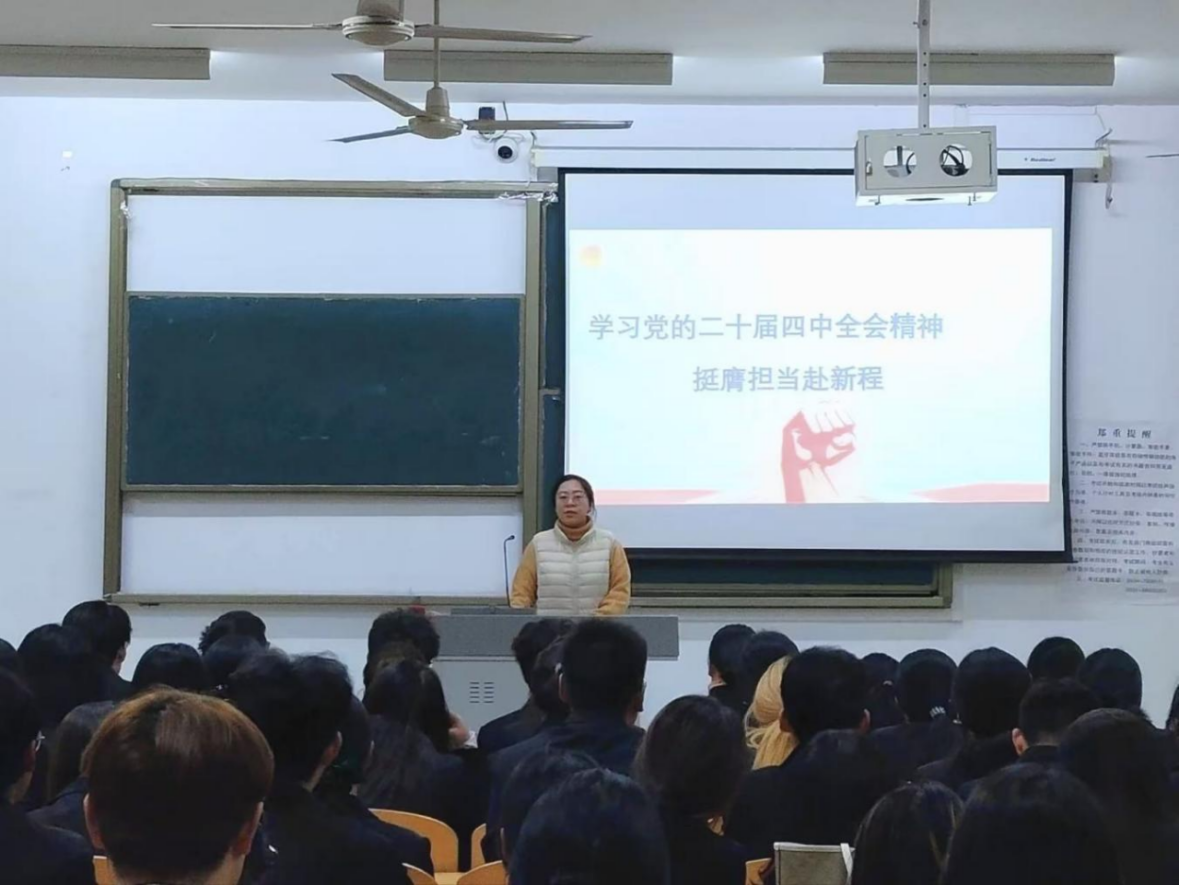 为深入学习贯彻党的二十届四中全会精神,引导青年学子筑牢思想根基、勇担时代重任,12月4日,402永利集团官网在博文楼427教室开展“学习党的二十届四中全会精神 挺膺担当赴新程”青马工程主题课程。学院团委书记李梦妍担任主讲人,青马班全体学员参与学习。